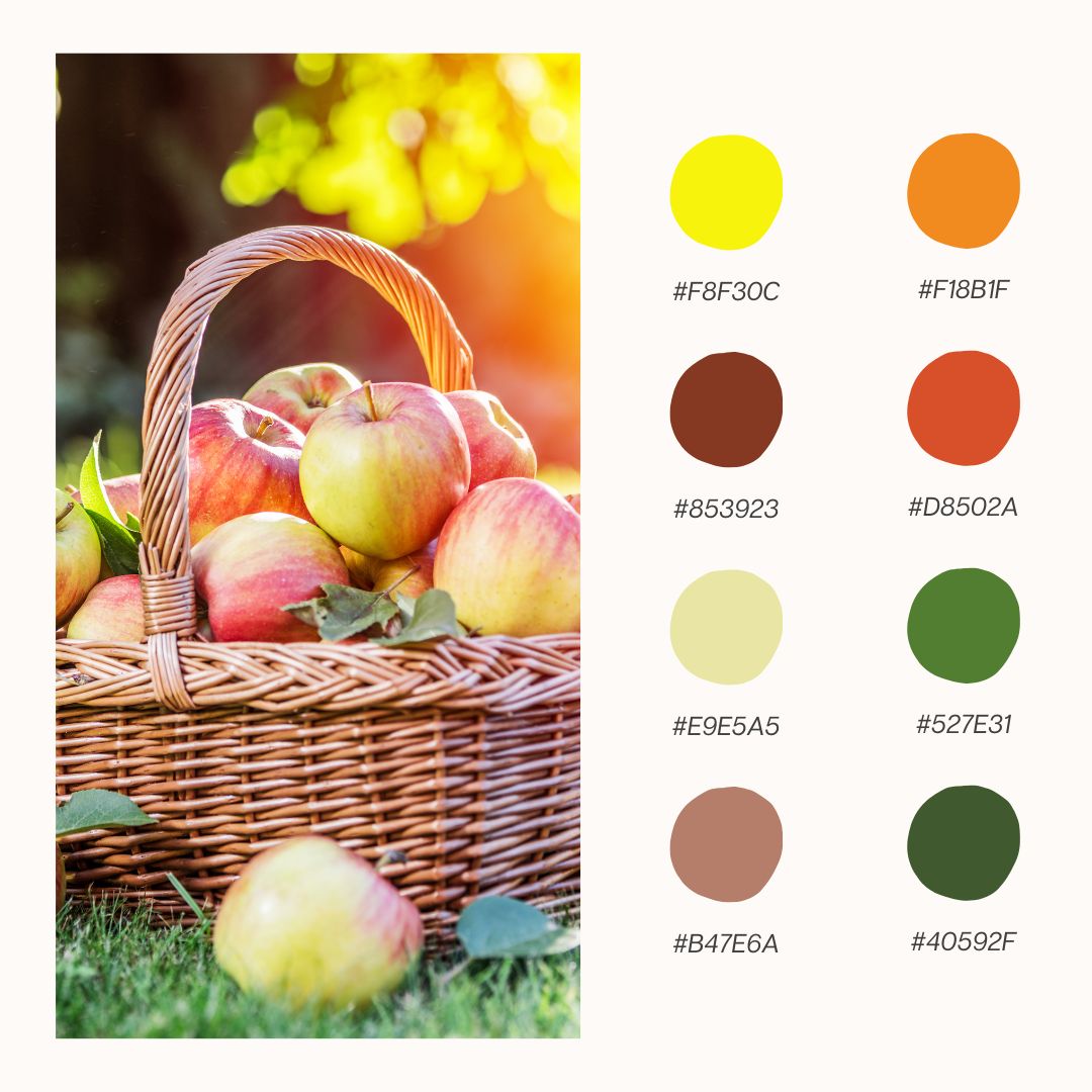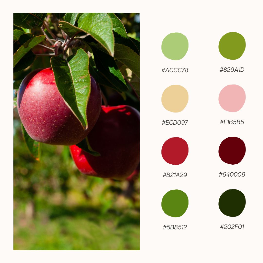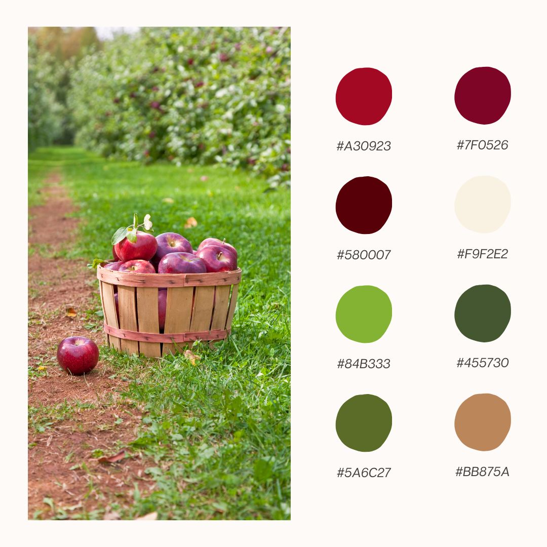 Welcome to the cozy heart of autumn! In this blog post, we’re diving into the warmth and charm of the apple orchard with six stunning fall color palettes inspired by crisp apples, golden sunlight, and rustic orchards. Whether you’re looking for rich reds, soft greens, or caramel tones, these palettes capture the essence of a fall day spent among the apple trees. Perfect for seasonal designs, home decor, or creative projects, these color combinations bring the orchard’s beauty to life, giving you all the inspiration you need for your fall arts, crafts and designs.