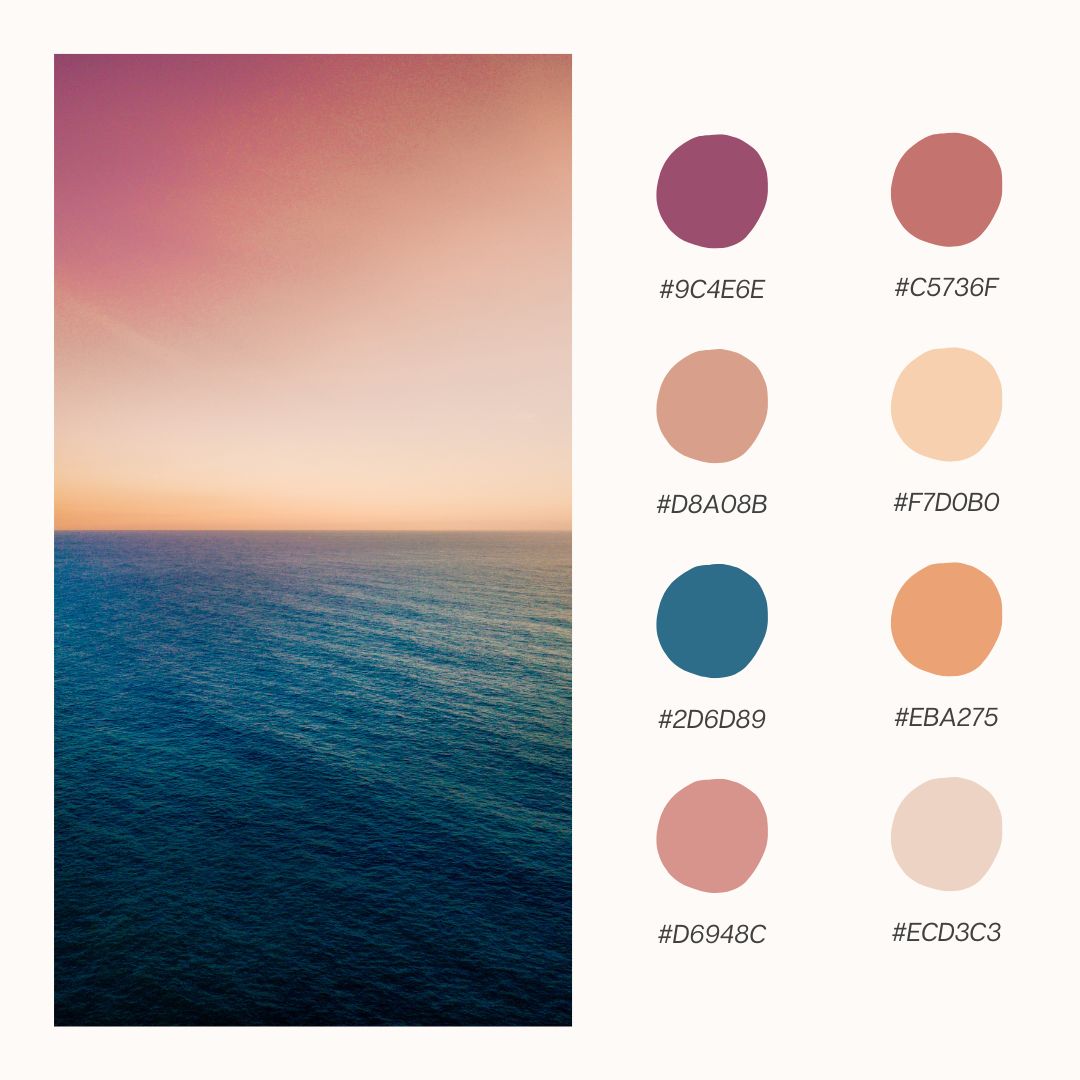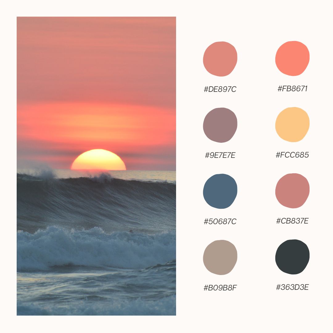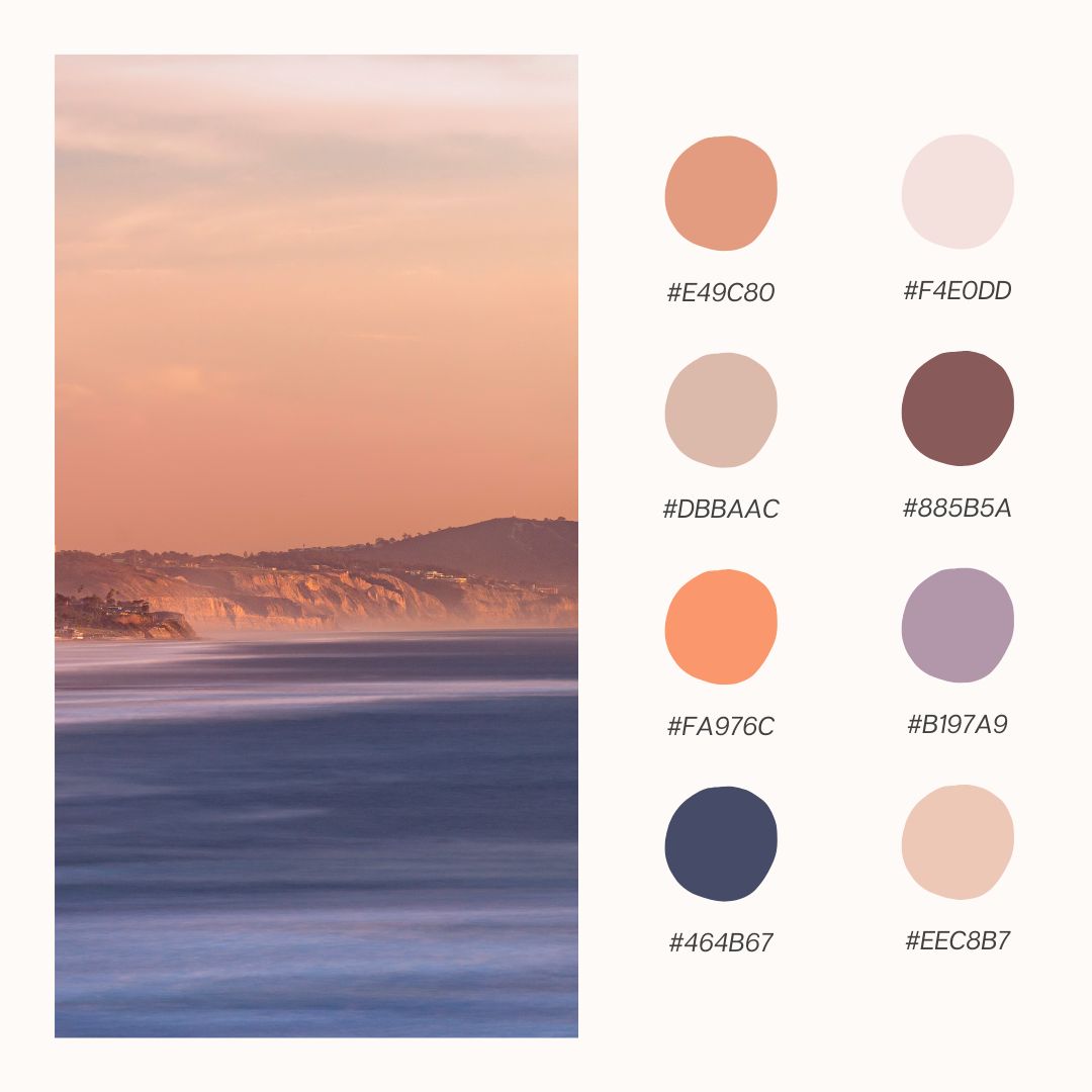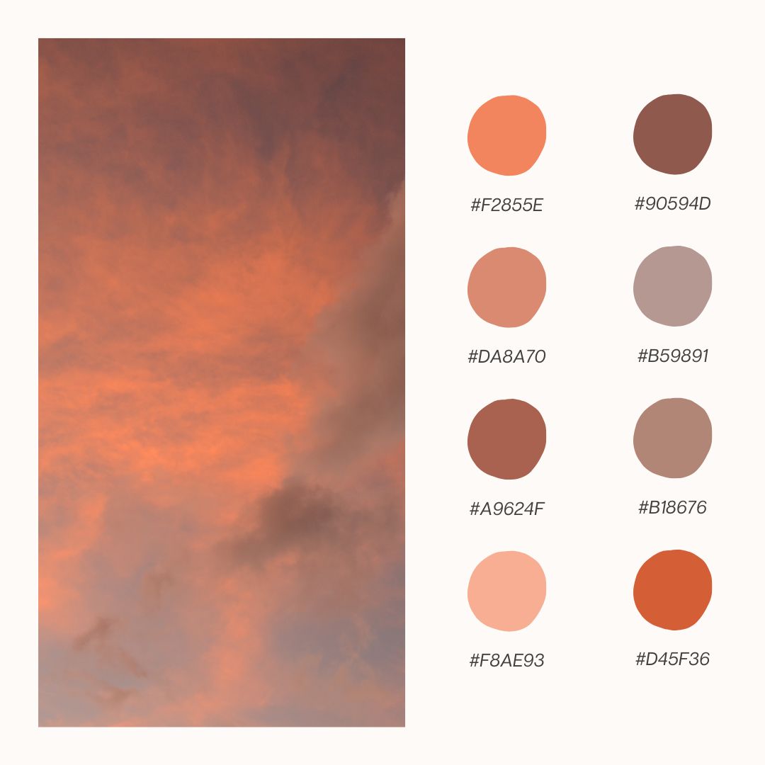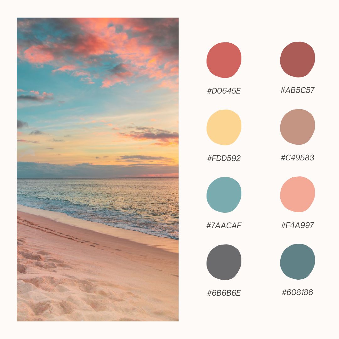 As the sun sets and the sky turns shades of soft peach, coral, and rose, the Peachy Sunset color palette brings the warm glow of those evening skies straight into your space. This palette is perfect for creating cozy, inviting atmospheres that make any room feel like an idyllic sunset retreat. Whether you’re refreshing your home decor, working on a craft project, or designing something special, the Peachy Sunset theme offers a blend of warmth and tranquility that will brighten up your spring. Let’s dive into these six beautiful palettes inspired by the glow of a perfect sunset!
