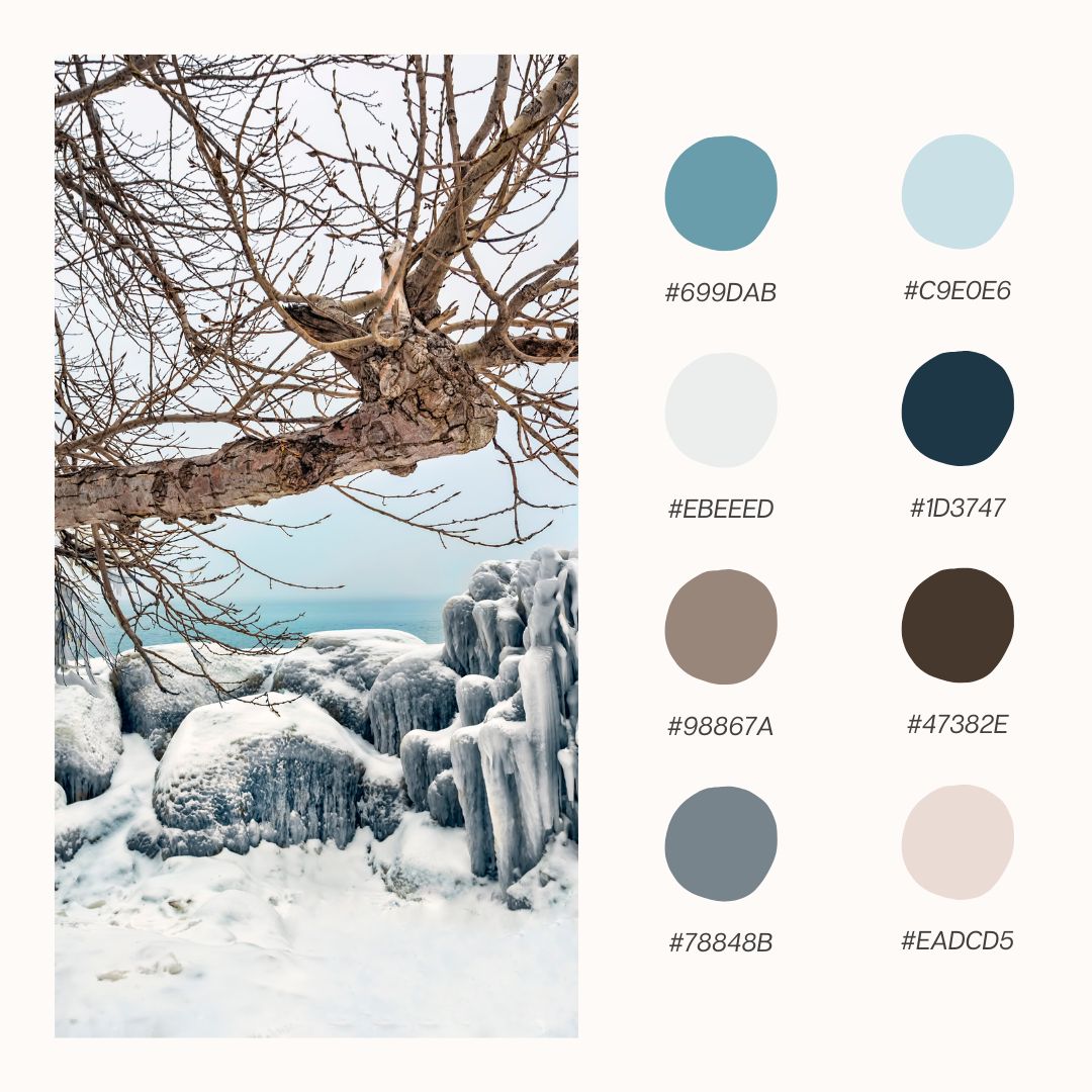 Step into a winter wonderland with the serene beauty of the “Icy Lake Shore” color palettes. Inspired by the stillness of snow-covered landscapes and the cool blues of icy waters, these palettes capture the peaceful elegance of nature at its frostiest. From frosty whites and calming blues to earthy browns and misty grays, these colors evoke the crisp tranquility of a frozen lakeside escape. They’re perfect for crafting projects, decor ideas, or simply finding inspiration to embrace the quiet charm of winter.